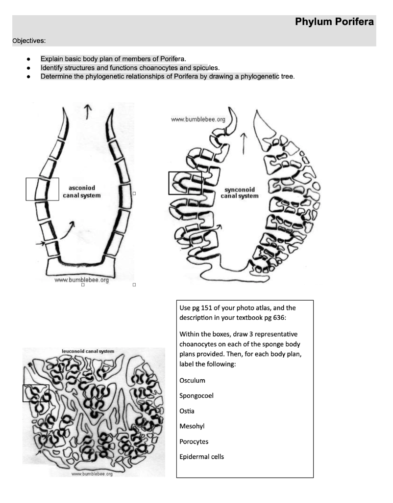 Phylum Porifera Sponges from www.exploringnature.org View the images of sponges. Draw and label a sponge (structures and functions!) include words such as choanocyte, osculum, spicule, archaeocyte and more! Show the direction of water flow through the sponge by drawing arrows in the diagram. And the simple act of parts of a sponge breaking of and establishing in a new location. (beat up and draw water up into the sponge). Make an illustration of your observations. Here (below) is a photo i took of a boring sponge living in a rock in our marine aquaria in the lab (this sponge can be seen on the left side of the anemone tank, close to the glass near the rear, sort of near the top. Hermaphroditic, gamete, spawn, planktonic larvae.